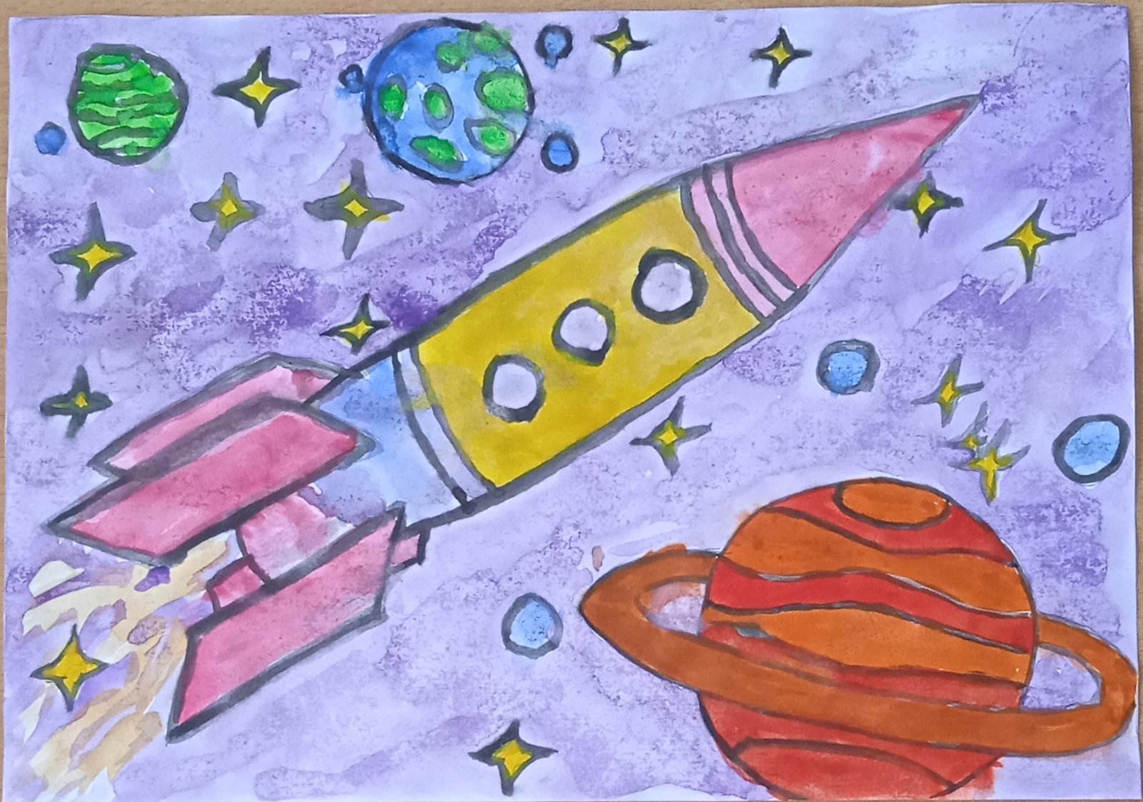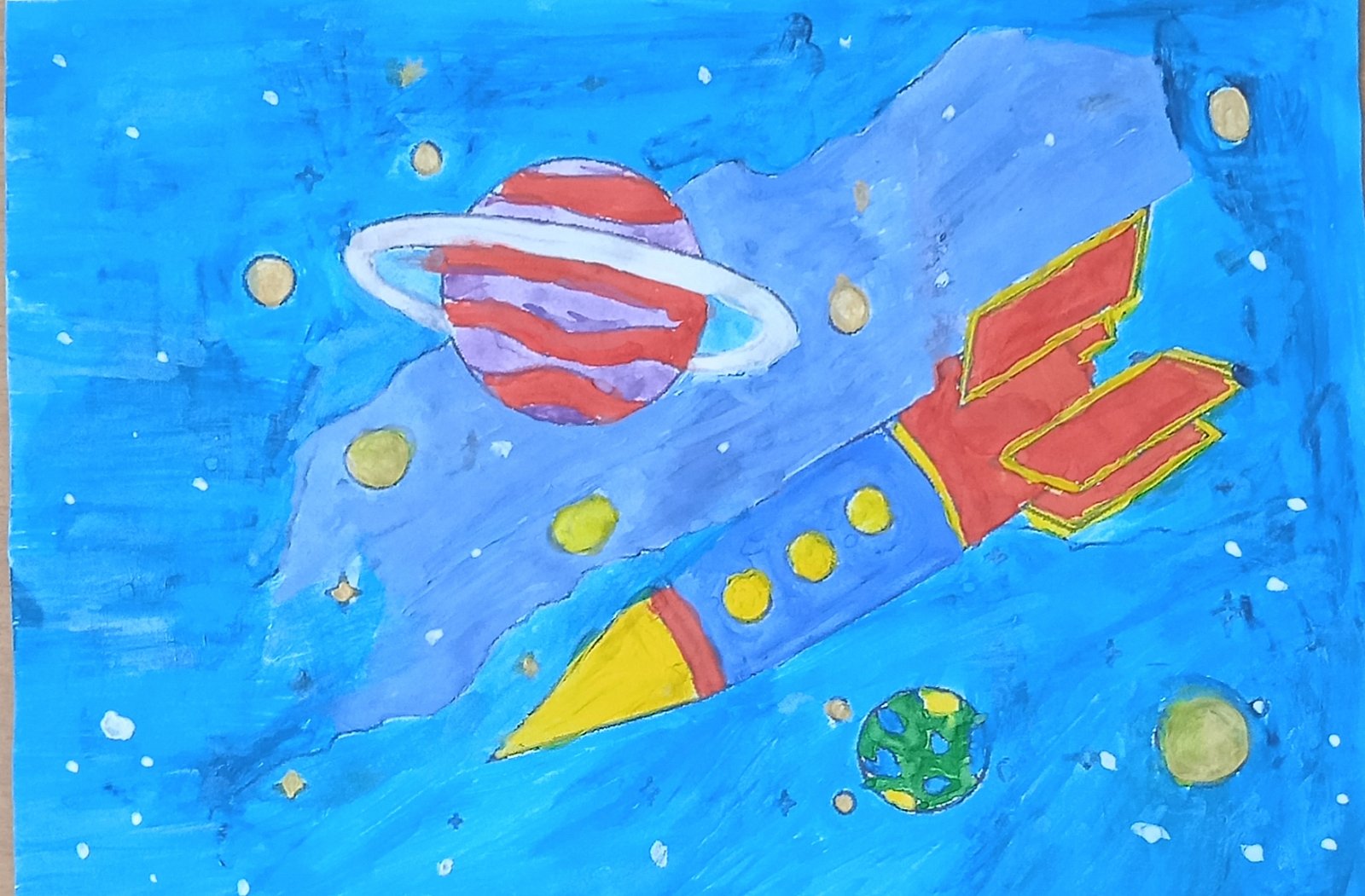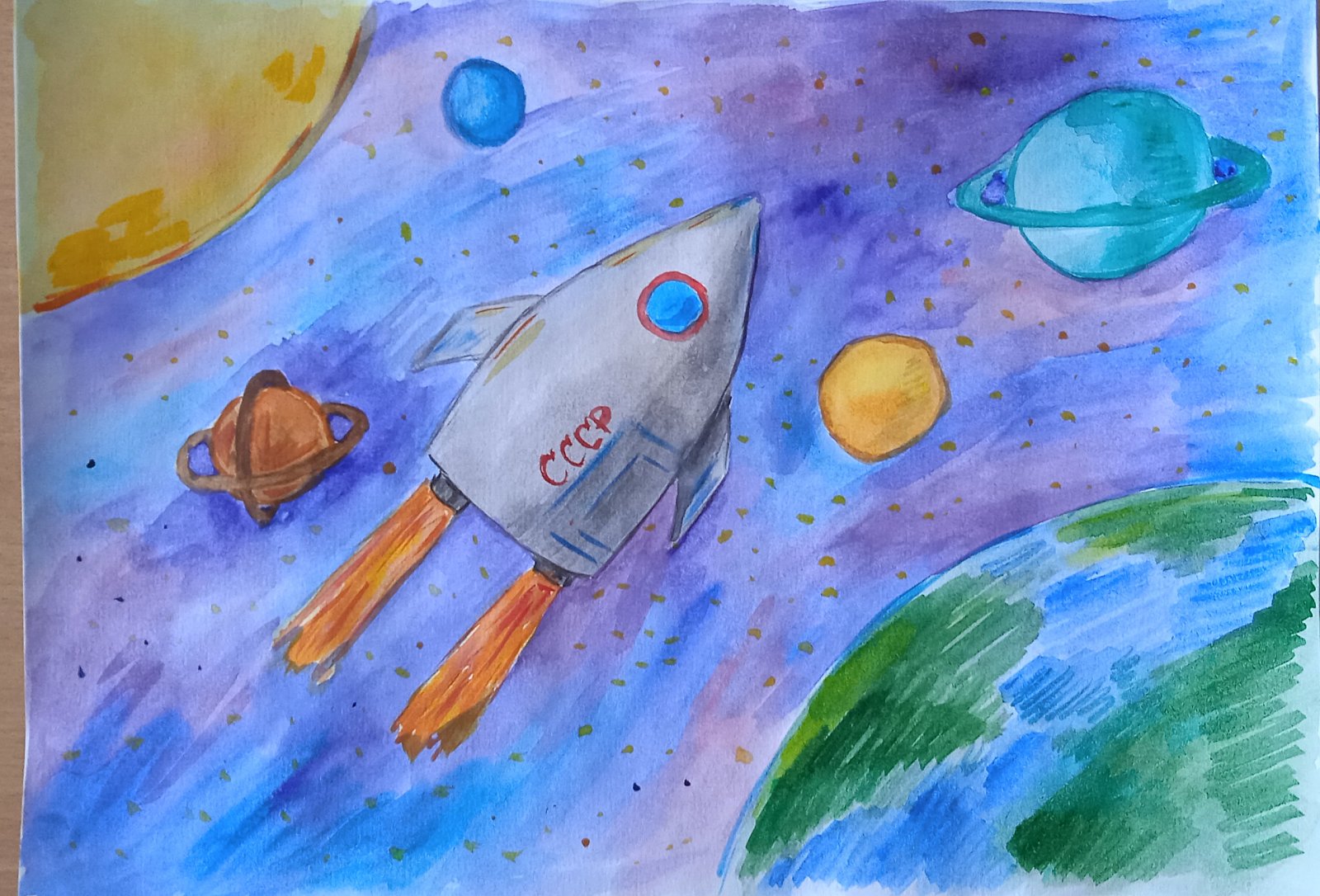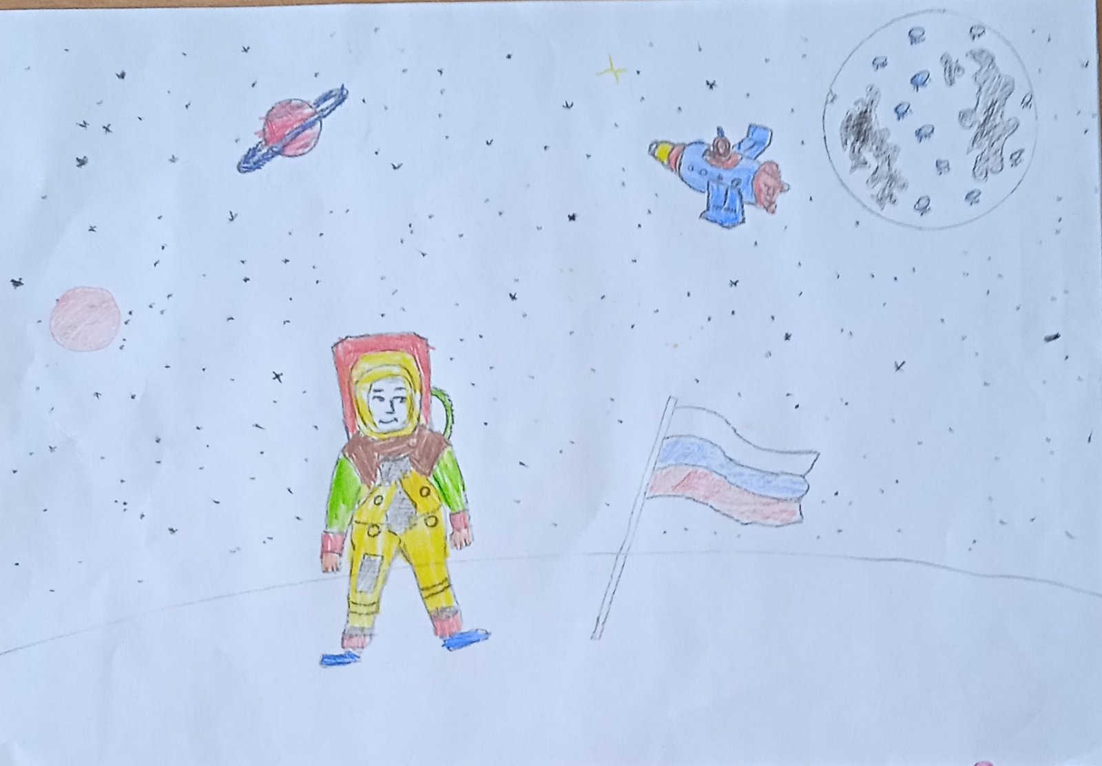 Дошколята старших и подготовительных групп с удовольствием нарисовали загадочный космос, Солнечную систему, ракеты и космонавтов, инопланетян и звезды. Их рисунки украсили приемные групп к празднику, который отмечает вся страна 12 апреля.