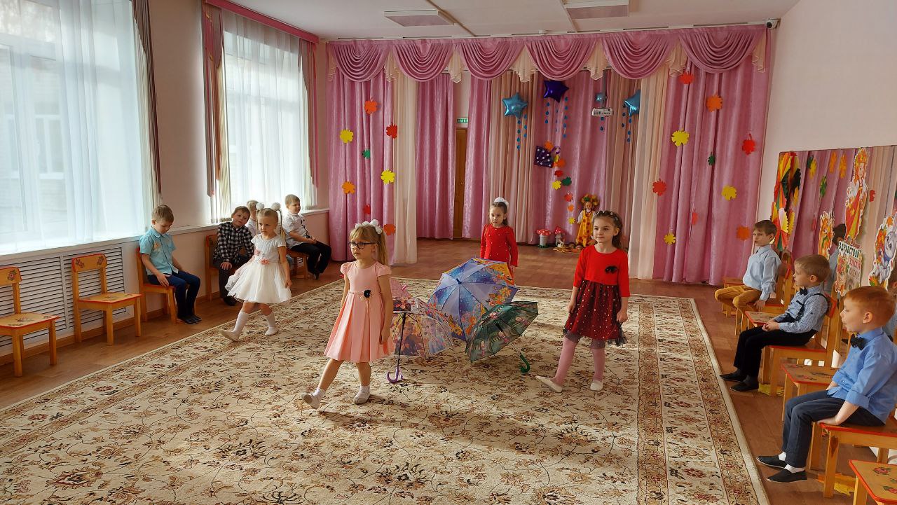 Пусть на дворе уже хмуро и пасмурно, а в нашем зале царила теплая, радостная, доброжелательная атмосфера. Дети водили хоровод, пели песенки об осени, играли в веселые игры, читали стихи.